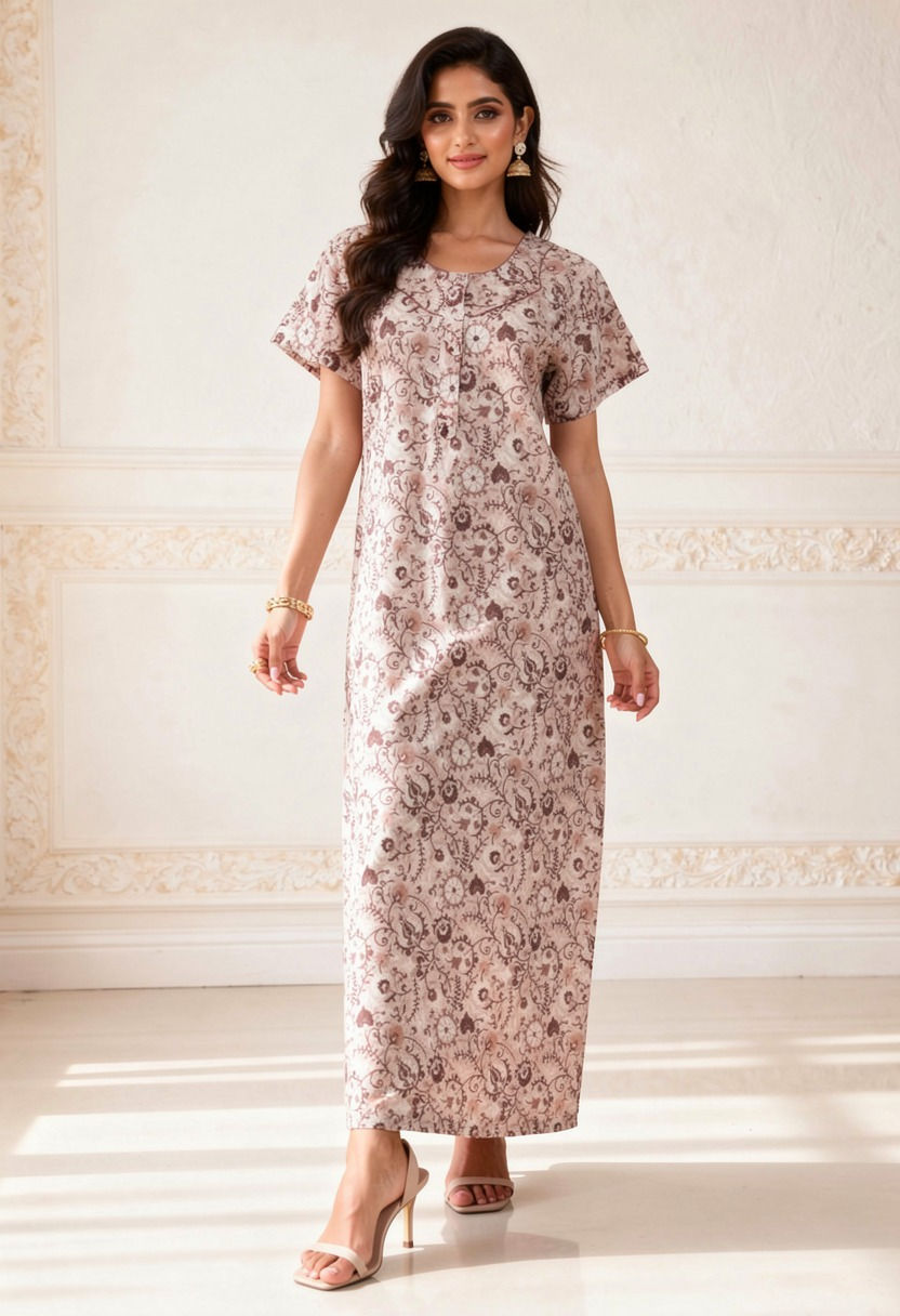 202602-Cotton Nighty-airline nonpleated-With mobile pocket-Comfort Wear-Elegant